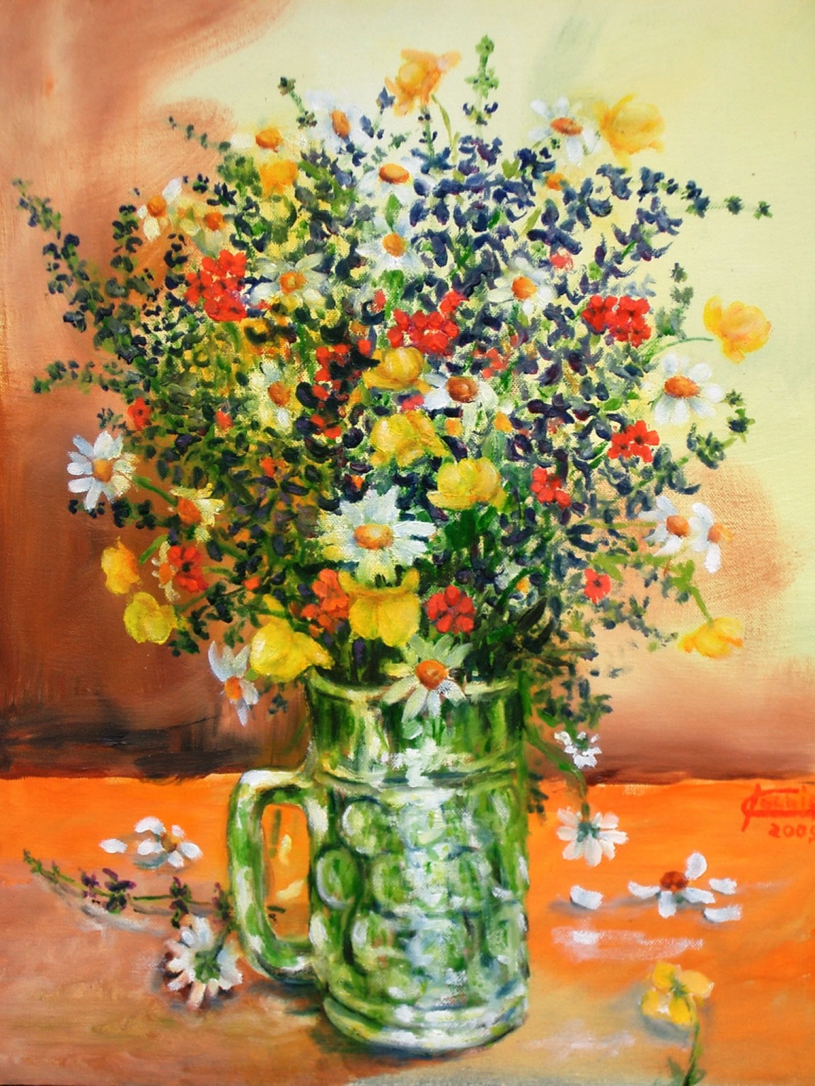 Fiori di campo in boccale di birra